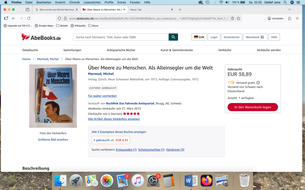 Dank KI lernt man ja immer mehr – auch über die eigene Biografie, erstaunlicherweise. Neulich hatte ich so ein Erlebnis, welches ich hier gerne teilen möchte. Durch Zufall fiel mir ein Buch aus meiner Vergangenheit in die Hände, meine Großeltern hatten es mir zu meinem 14. oder 15 Geburtstag geschenkt, also schon ein paar Tage her. Ich las es, war fasziniert. Der Titel: „The Voyage of the Geneve“ (auf Deutsch erschienen als „Über Meere zu Menschen“). Es geht um den Schweizer Abenteurer Michel Mermod (verstorben 2015), der in den Jahren von 1961 bis 1966 von Peru aus mit einem dort selbstgebauten Boot durch den Pazifik und weiter um die Welt bis nach Hyeres in Frankreich gesegelt war. Ein faszinierendes Buch, schon als sehr seltenes und wertvolles Zeitdokument: Wie war es, in den 1960er Jahren in einem kleinen und sehr einfachen Boot durch den Pazifik zu segeln?